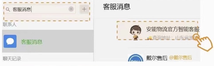 ▶windows系统:手动搜索找到客服消息,即可进入聊天页面;